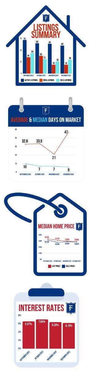 The year-long trend of low inventory and high demand continued in December. The active listings dipped down to a seven-month low with just 60 houses on the market while the median days on market dropped to six days.