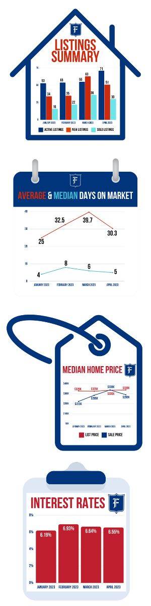 Historically, April has been the month with the second most new listings in a year— May is traditionally the month with the highest number of new listings. This April, the rate of new listings abated slightly from March to April, as well as year over year from 2022 to 2023. This may be an anomaly, but if this trend were to continue in May, the Ames real estate market could feel even more of a squeeze as we head into the summer months.That could mean increased competition for homes that are on the market corresponding with a build-up in demand.